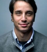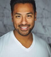 A green building facade with a white door and window is partially visible, surrounded by lush greenery. A stone wall with a white post supports decorative iron fencing, while branches overhang the top of the scene.
